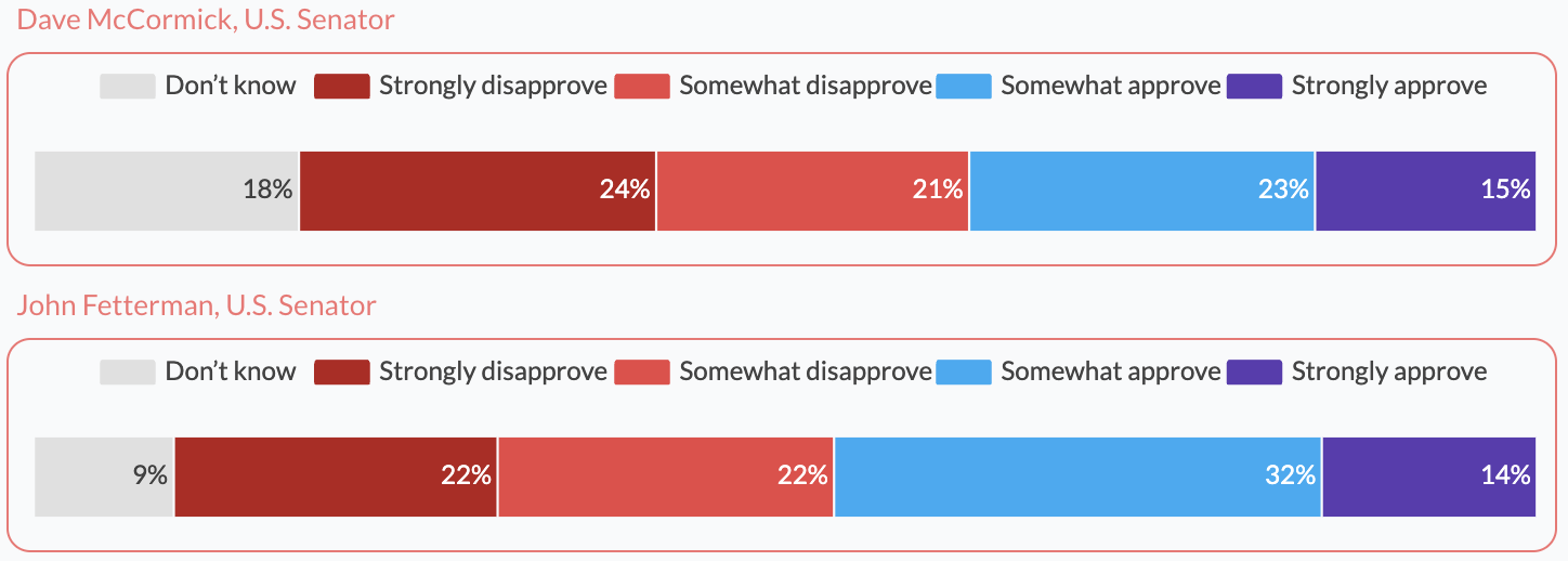 John Fetterman, U.S. Senator: 46% (October) 47% (November) approve