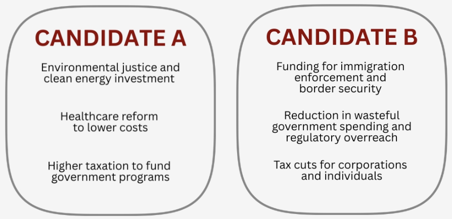 Respondents were shown an image of two hypothetical candidates and their agendas